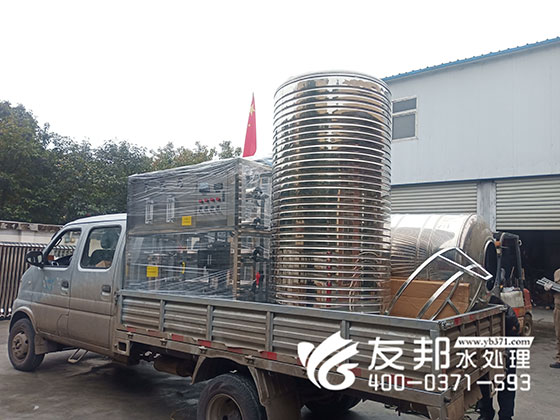 The customers consistent support小型純凈水設備廣泛應用到不同行業領域,感謝客戶選擇友邦。接下來我們一起來了解下這套小型純凈水設備:原水箱→原水增壓泵→多介質過濾器→活性炭過濾器→加藥裝置→精密過濾器→RO反滲透系統→臭氧殺菌機→純水罐